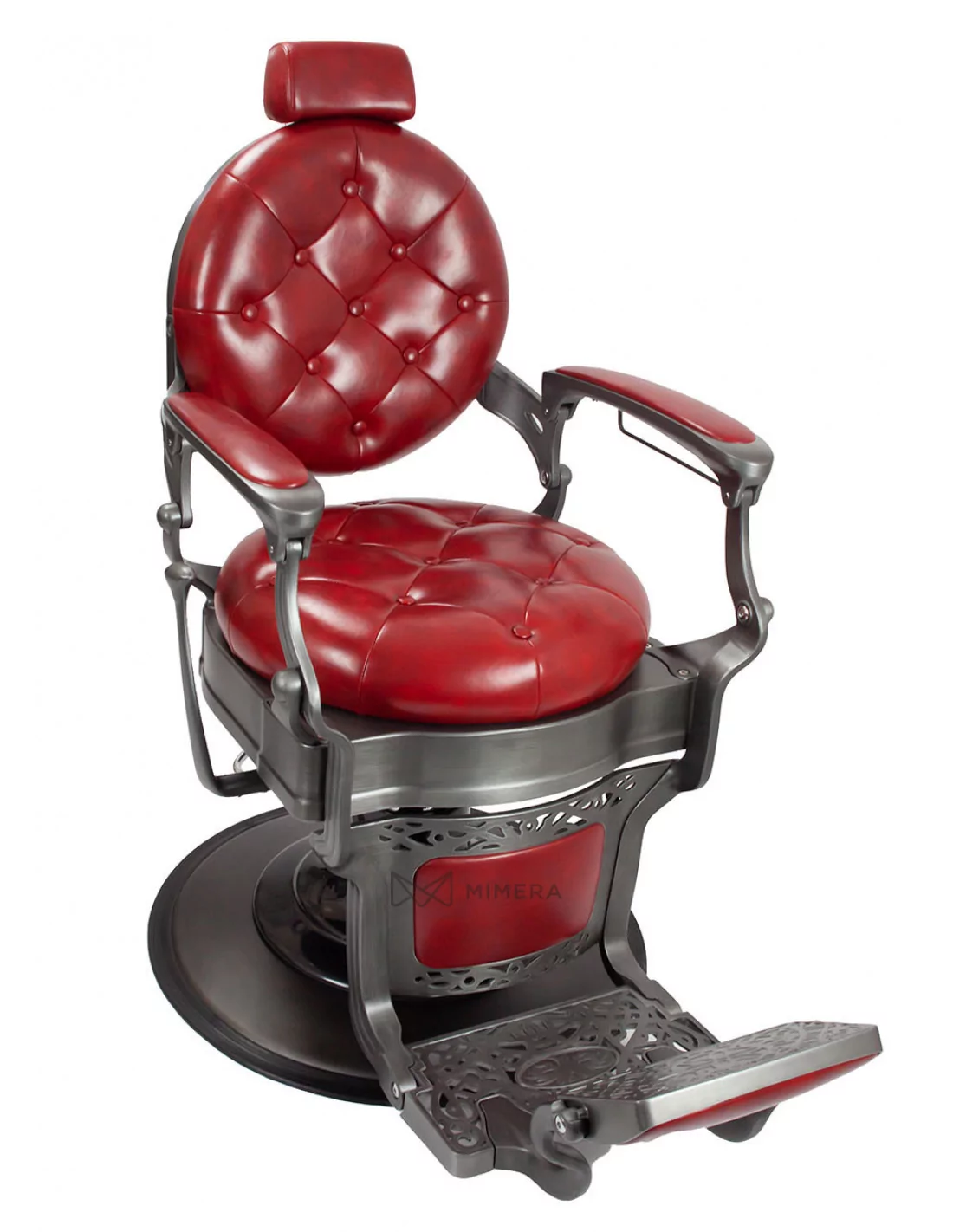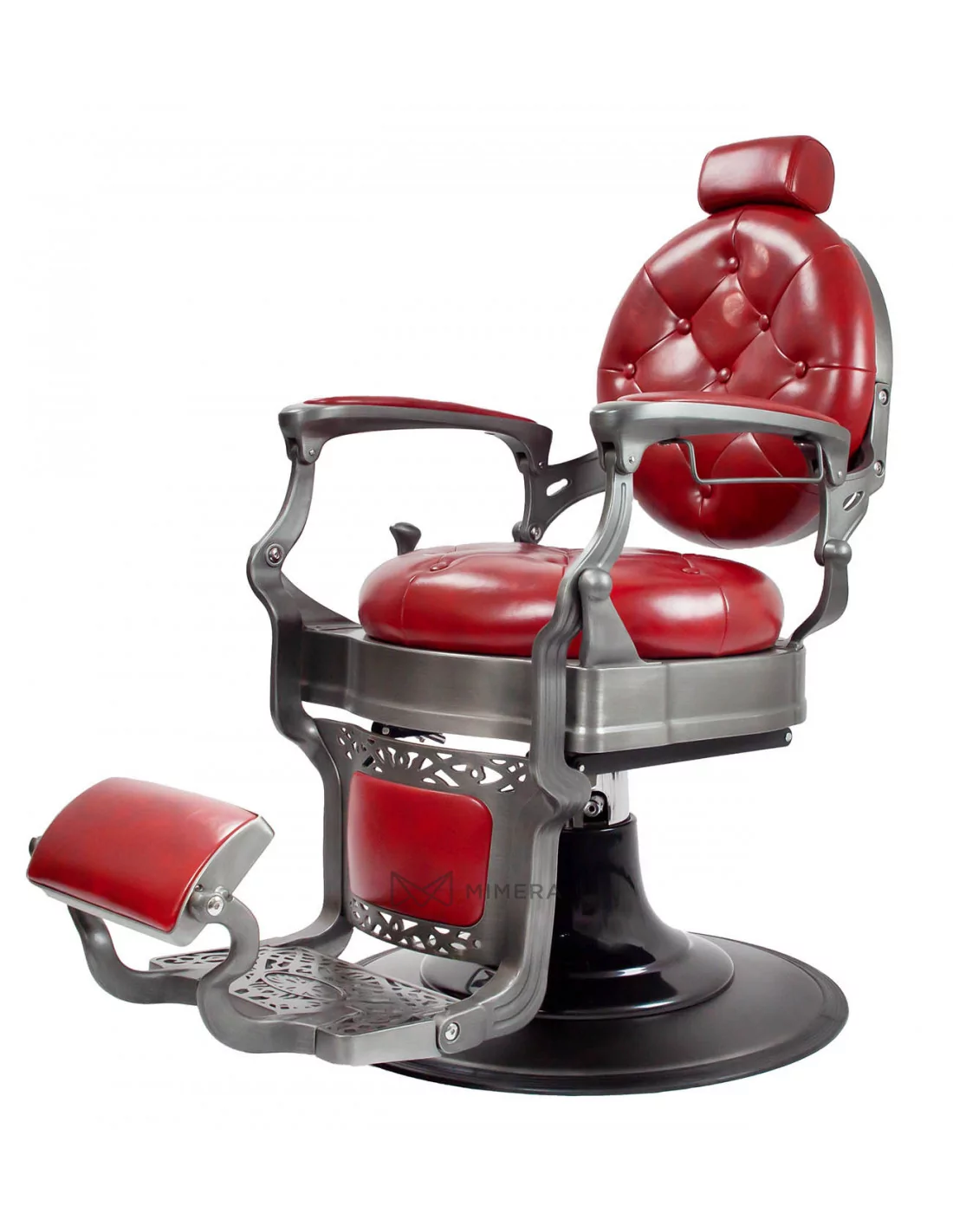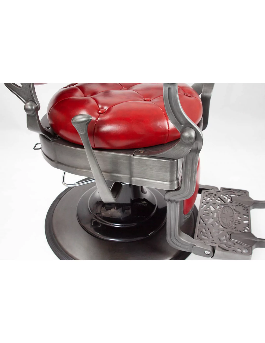 Der Barberstuhl RETRO MONET ist ein Meisterwerk. Sein massiver Edelstahlkorpus wird von einer großen runden Basis getragen, die ihn extrem stabil und gut ausbalanciert macht.