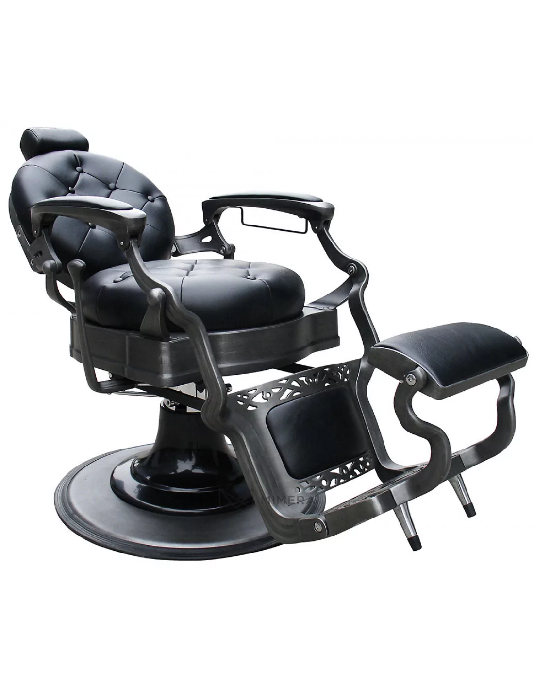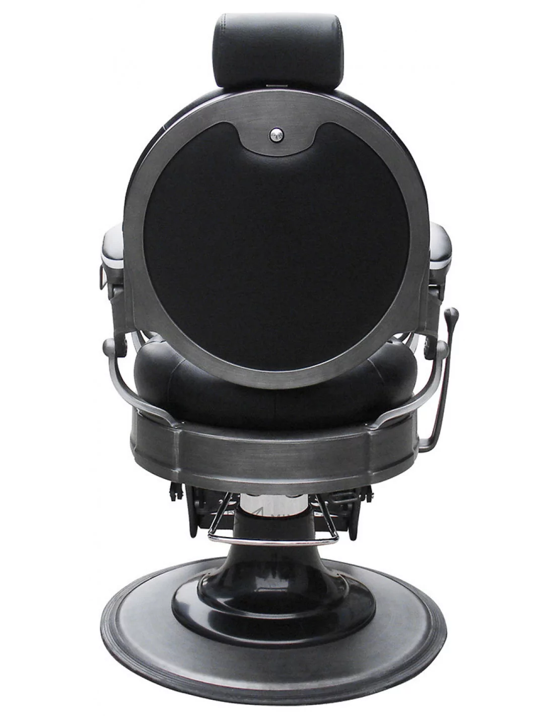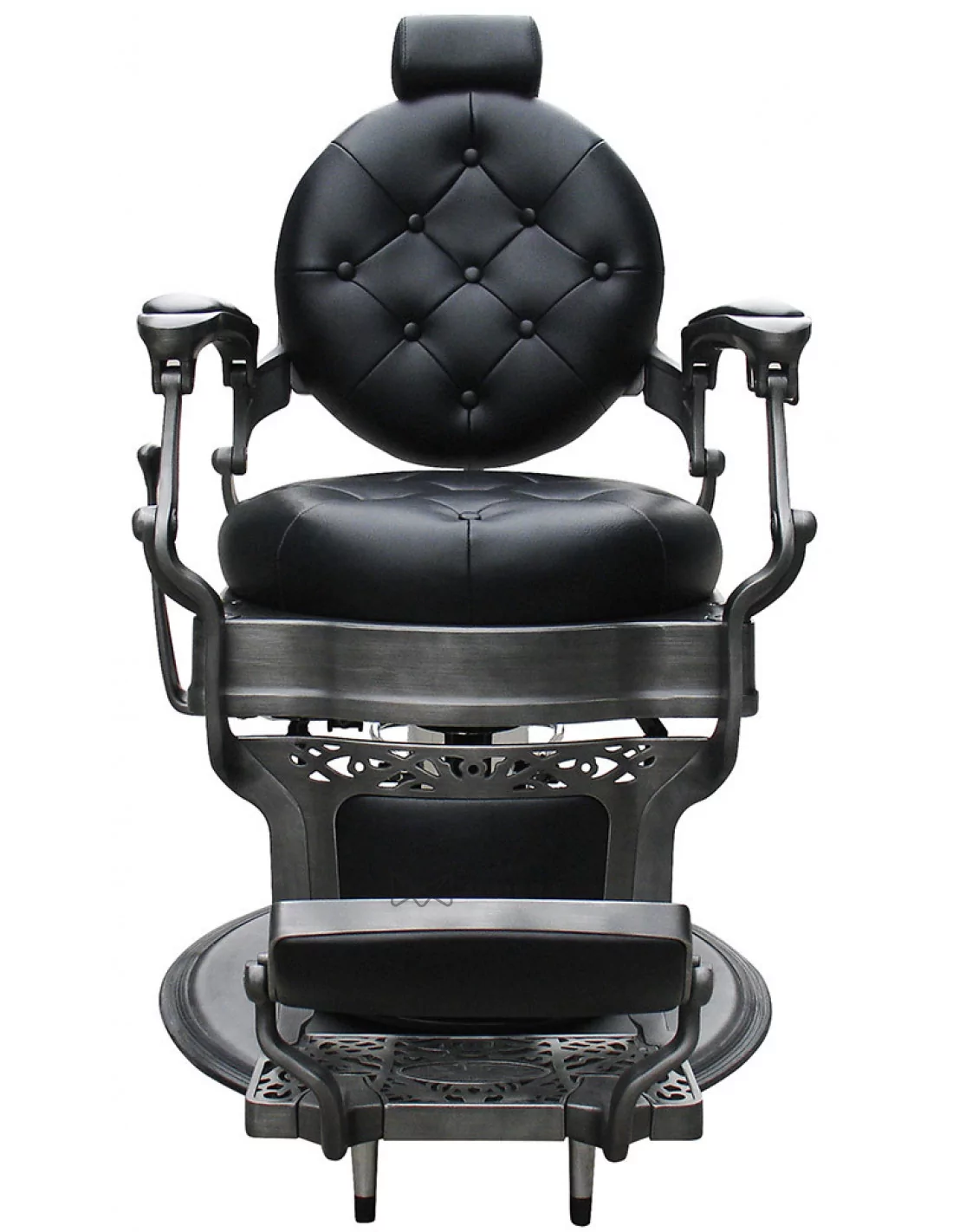 Der Barberstuhl RETRO MONET ist ein Meisterwerk. Sein massiver Edelstahlkorpus wird von einer großen runden Basis getragen, die ihn extrem stabil und gut ausbalanciert macht.