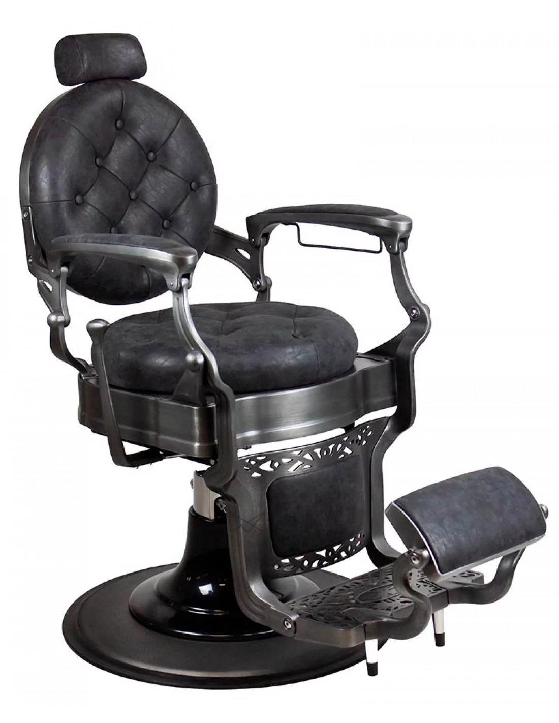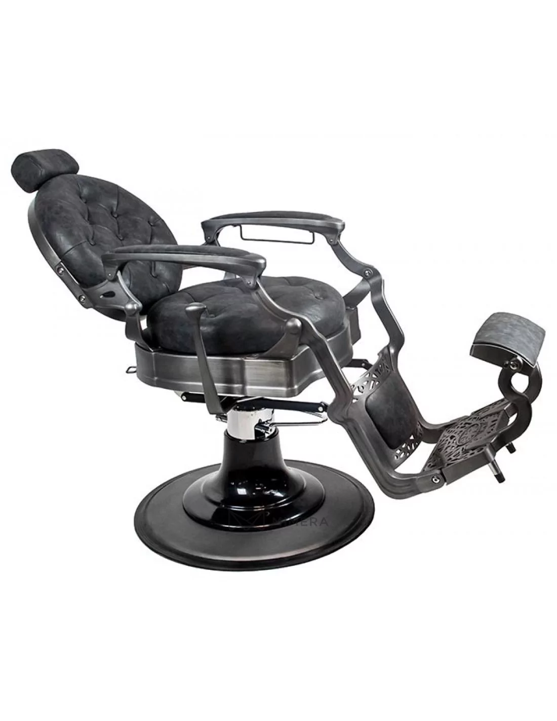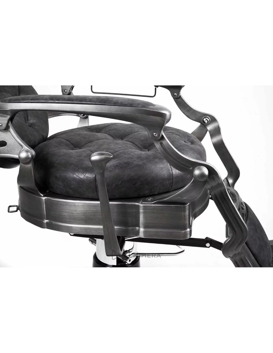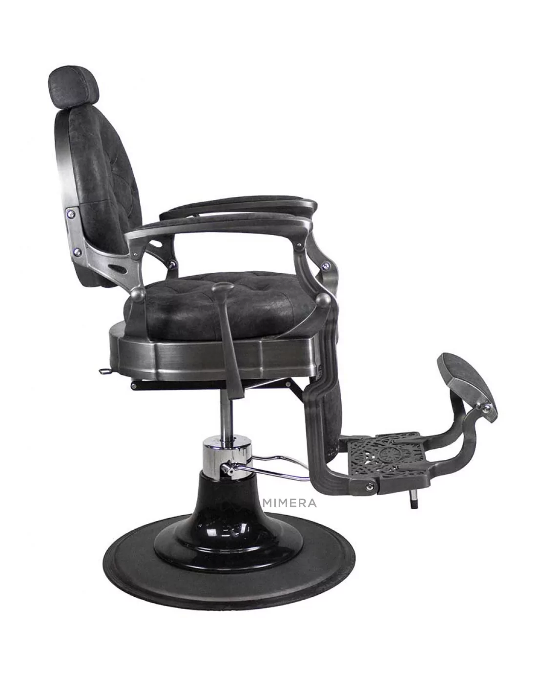 Der Barberstuhl RETRO MONET ist ein Meisterwerk. Sein massiver Edelstahlkorpus wird von einer großen runden Basis getragen, die ihn extrem stabil und gut ausbalanciert macht.