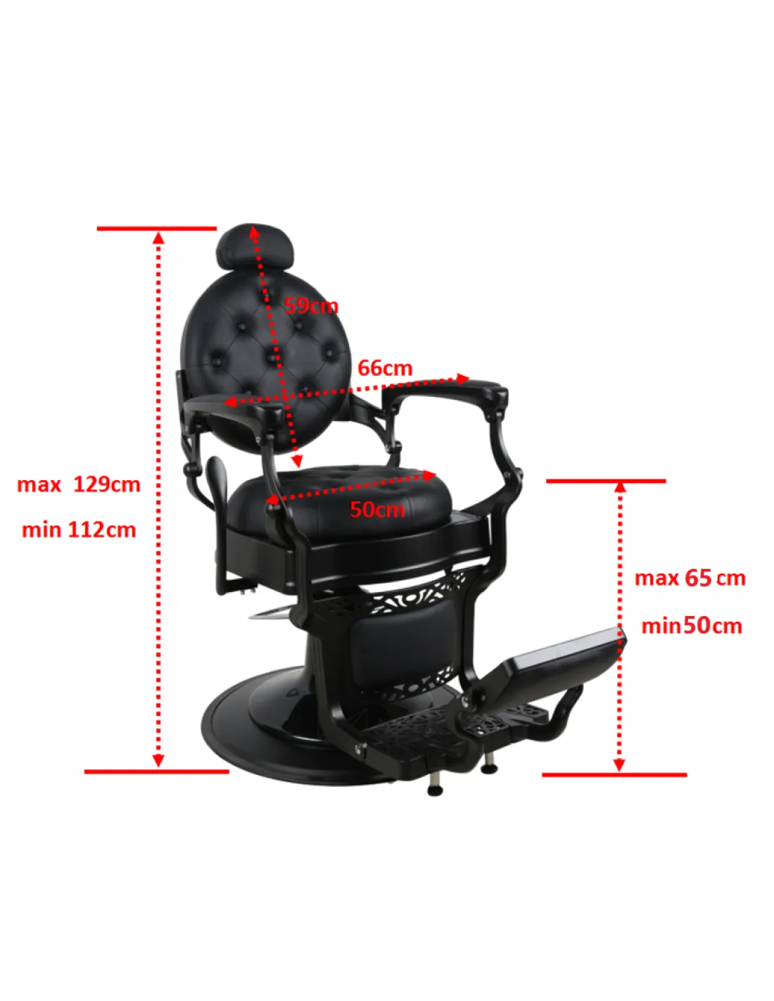 Der Barberstuhl RETRO BLACK ist ein echtes Meisterwerk. Sein massiver Edelstahlkörper in Mattschwarz mit einer großen massiven Basis ist extrem stabil und gut ausbalanciert.