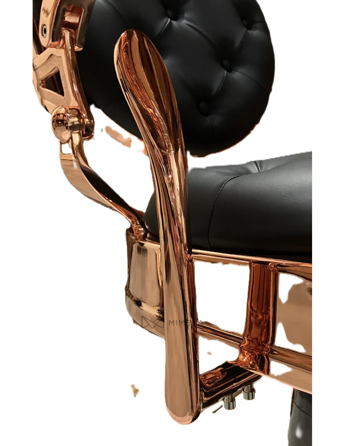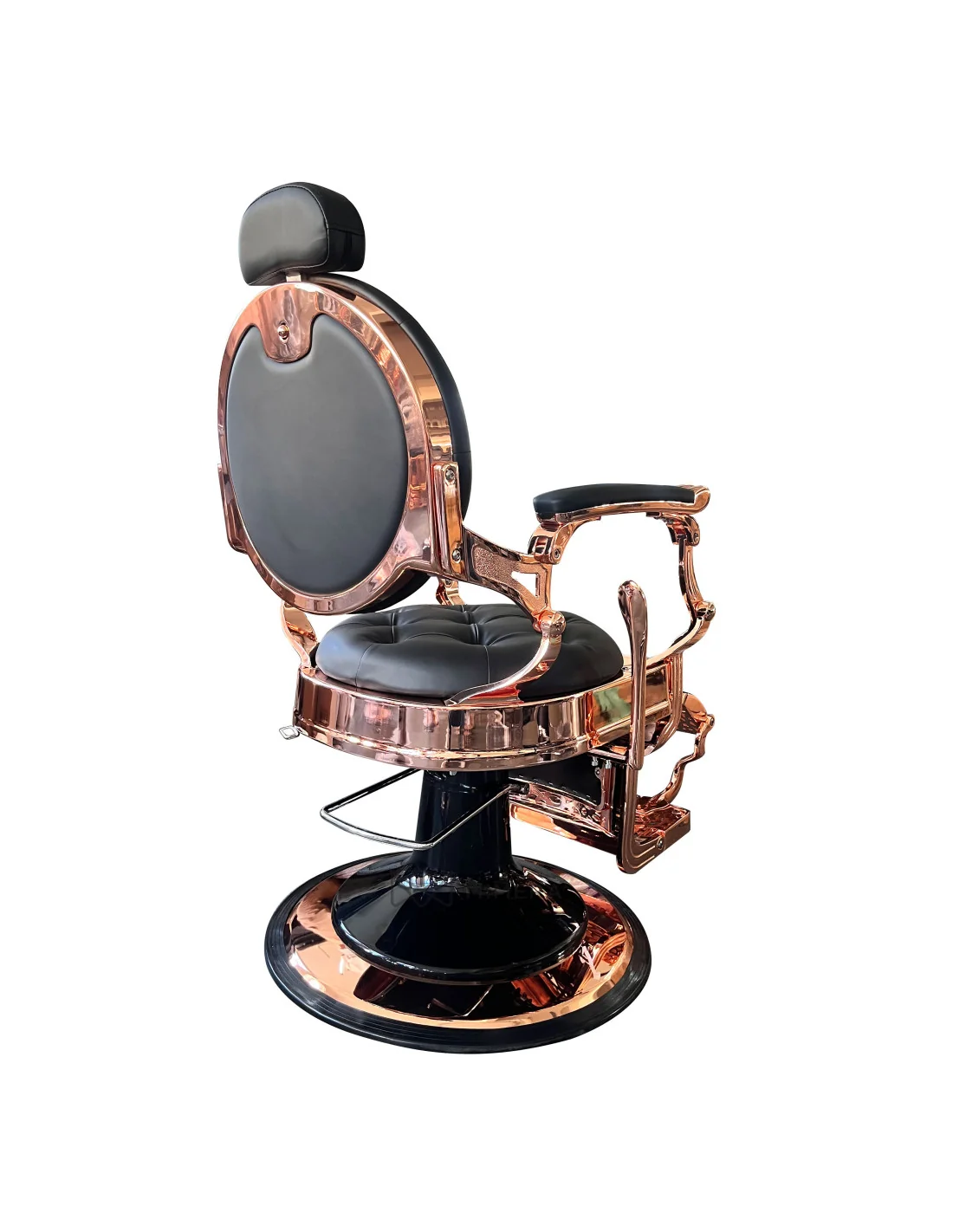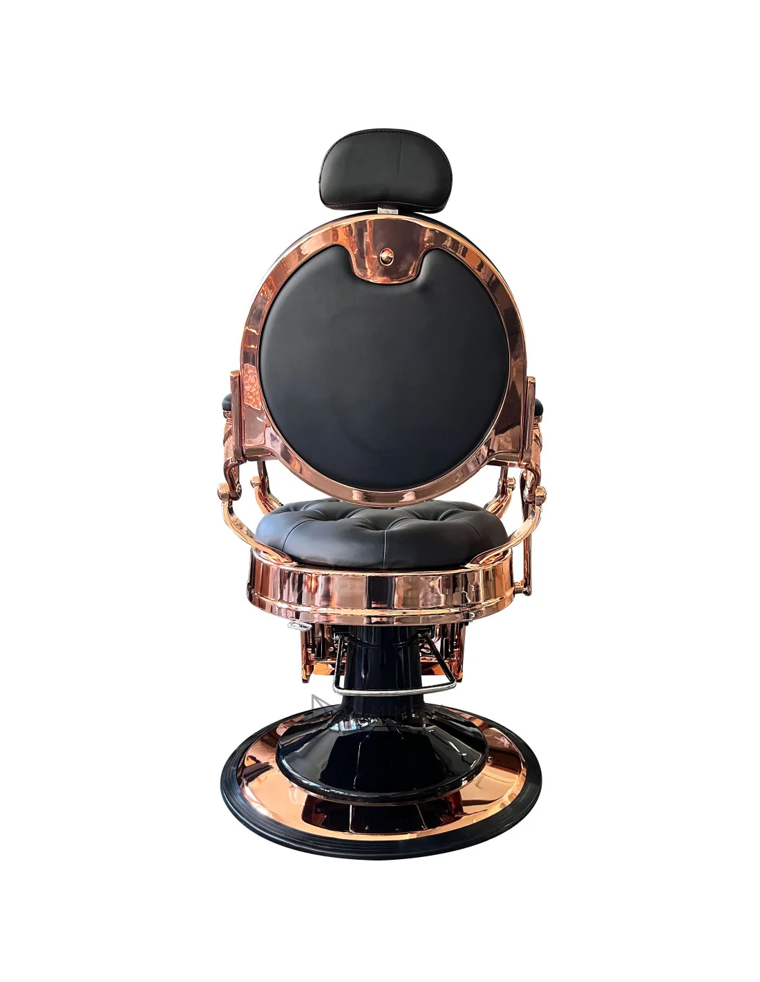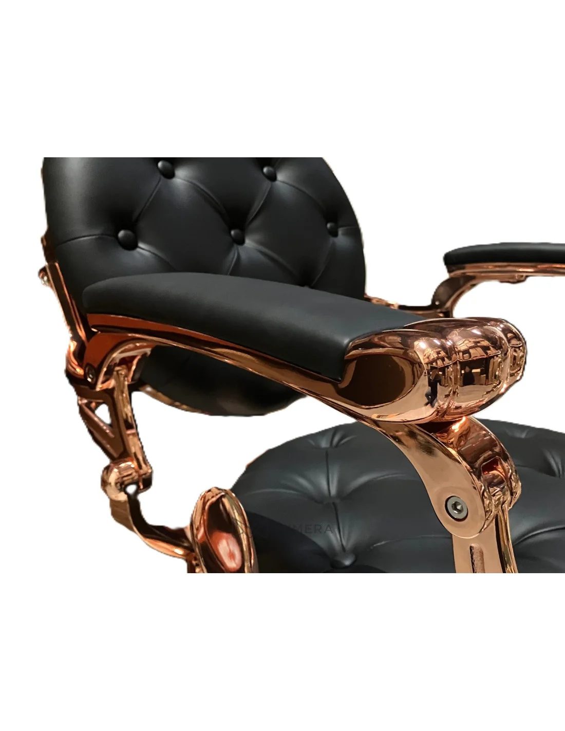 Der Barberstuhl RENOIR LUX ROSE GOLD ist ein echtes Meisterwerk. Sein massiver Edelstahlkörper in Roségold mit einer großen massiven Basis ist extrem stabil und gut ausbalanciert.