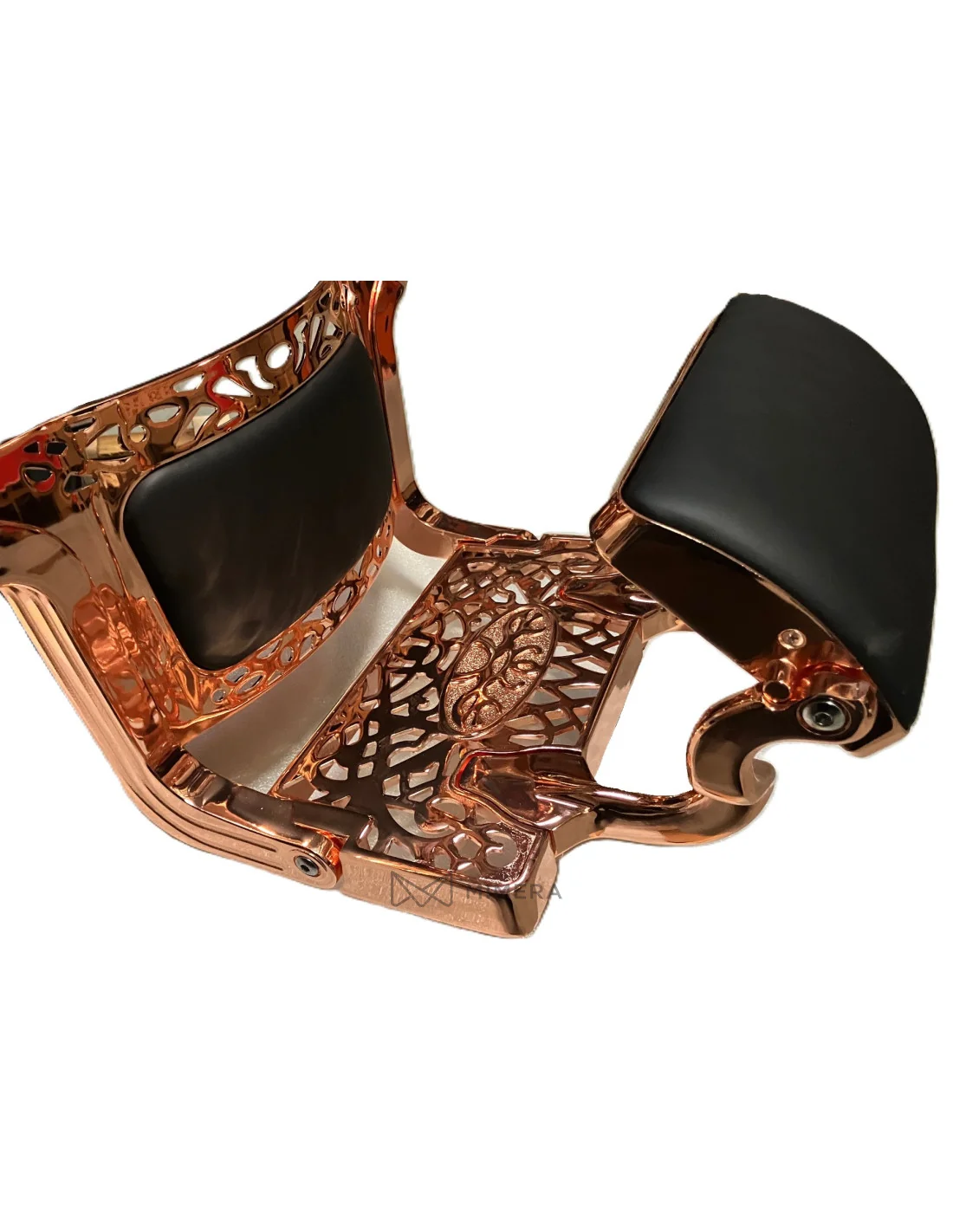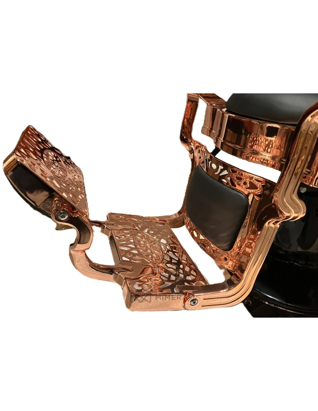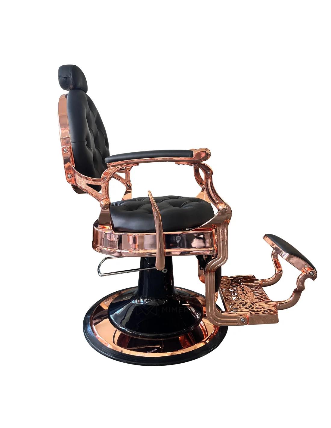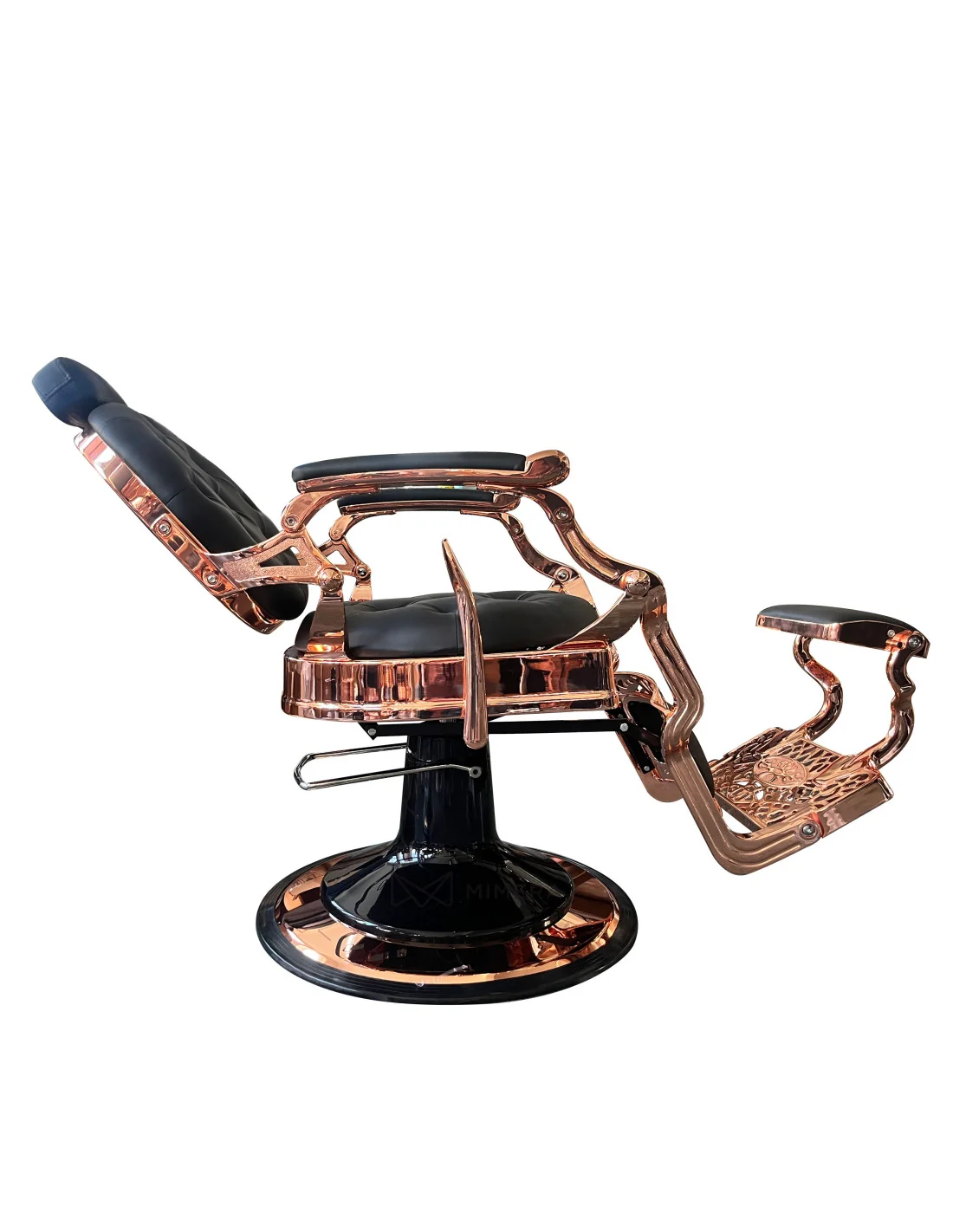 Der Barberstuhl RENOIR LUX ROSE GOLD ist ein echtes Meisterwerk. Sein massiver Edelstahlkörper in Roségold mit einer großen massiven Basis ist extrem stabil und gut ausbalanciert.