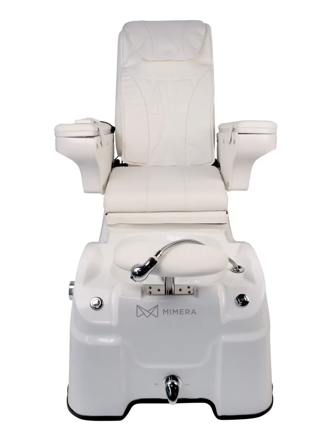Auch der Komfort des Therapeuten wurde nicht vernachlässigt. Die Beinstütze lässt sich in der Höhe verstellen, um eine ergonomische Arbeitsposition zu gewährleisten. Mit der herausziehbaren Dusche können Sie die Füße des Kunden abspülen oder die Wanne nach der Behandlung reinigen. Außerdem verfügt der Stuhl über eine elektrische Abflusspumpe, die das Wasser innerhalb von zwei Minuten abpumpt.