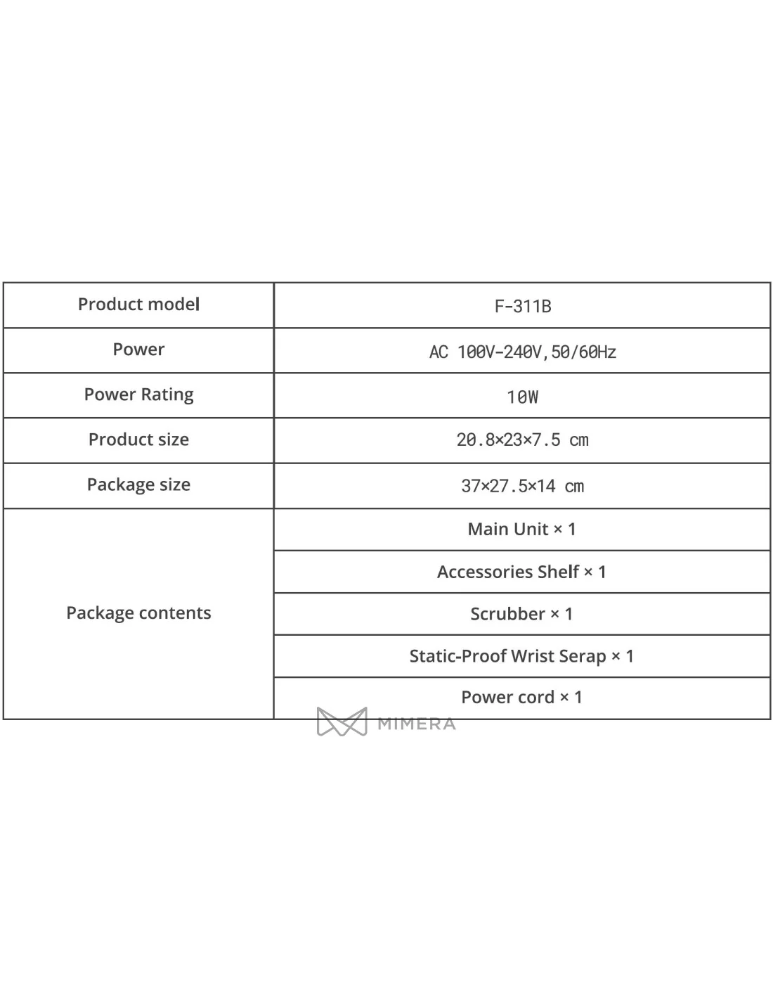 Der Ultraschallspatel F-311B arbeitet auf der Basis von Ultraschallwellen. Die Ultraschallwellen treten aus dem Metallkopf aus und versetzen die Wassermoleküle in Bewegung, um die Haut zu reinigen. Dieser Vorgang wird als Kavitationsschälen durch. Es handelt sich um ein nicht-invasives und schmerzloses Reinigungsverfahren, das eine wirksame Entfernung abgestorbener Zellen von der Oberfläche der Epidermis ermöglicht.